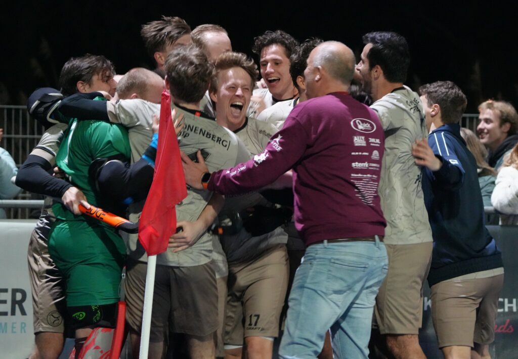Spelers vielen elkaar in de armen, en ook de jeugd sprong juichend het veld op om samen te dansen en te feesten. Almere gaat dankzij deze wedstrijd door naar de Finale Gold Cup Heren.