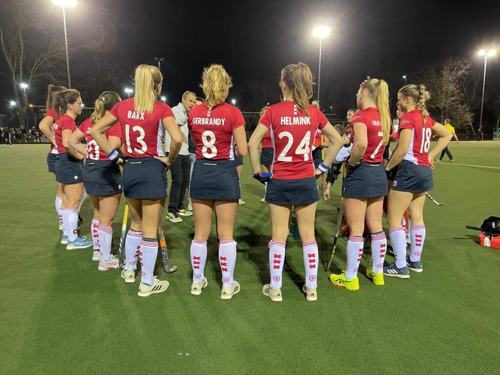 Zoetermeer krijgt haar eerste strafcorner. De bal wordt met hoge snelheid aangegeven en keurig aangenomen, maar het schot gaat naast. Niet veel later krijgen ze een tweede strafcorner. De speelsters bespreken hun strategie en voeren het perfect uit: de bal belandt in het doel! Maar… het doelpunt wordt afgekeurd, omdat de bal via een verdediger van Athena hoog in het net is gegaan.