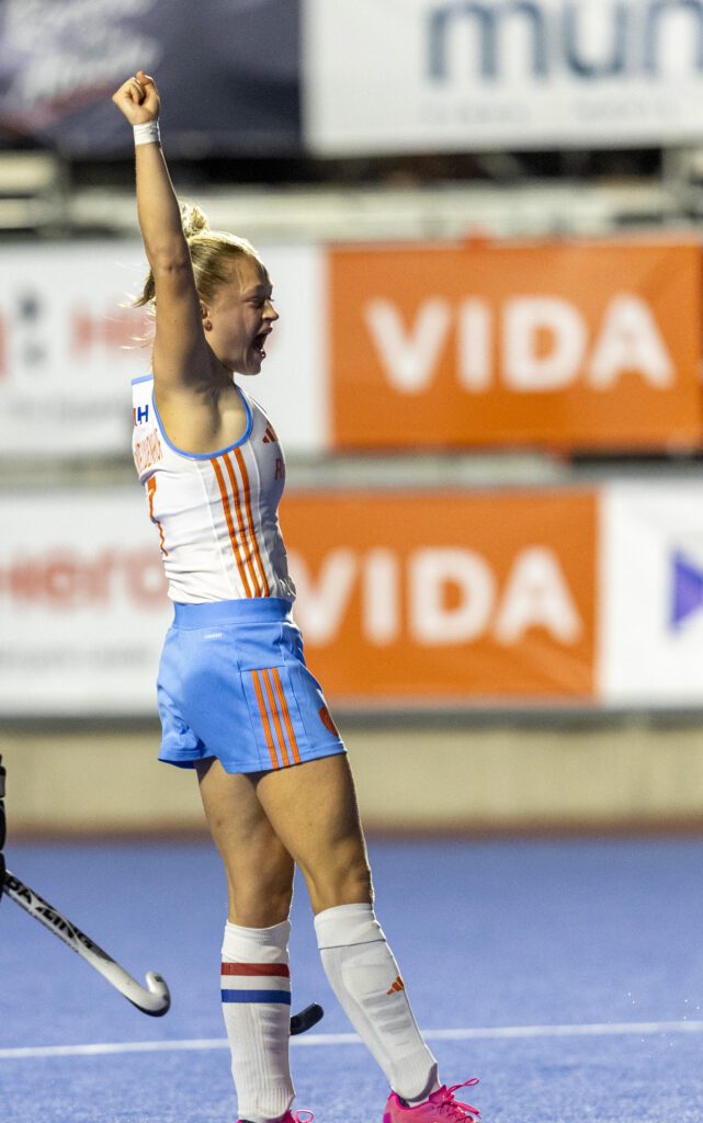 In het laatste kwart was vooral de vraag of Oranje de dubbele cijfers zou halen. Van den Nieuwenhof sleepte in de 54ste minuut hard raak voor haar hattrick en verzilverde later ook nog een tweede strafbal. Met haar vierde treffer bepaalde ze de eindstand op 10-0 en nestelde ze zich voorlopig bovenaan de topscorerslijst.