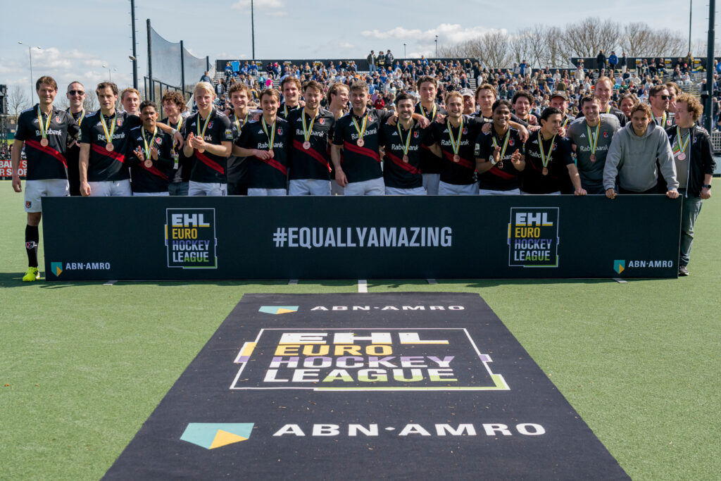 De heren van AH&BC hebben toch nog een prijs overgehouden aan de EHL 2026. In de reguliere speeltijd hield het een evenwicht met Club de Campo Madrid: 2-2. Shoot-outs moesten dus uitwijzen wie er met de bronzen plak vandoor zou gaan. Dat werd uiteindelijk de Nederlandse kampioen van 2025. De serie werd net iets beter genomen: 4-3.