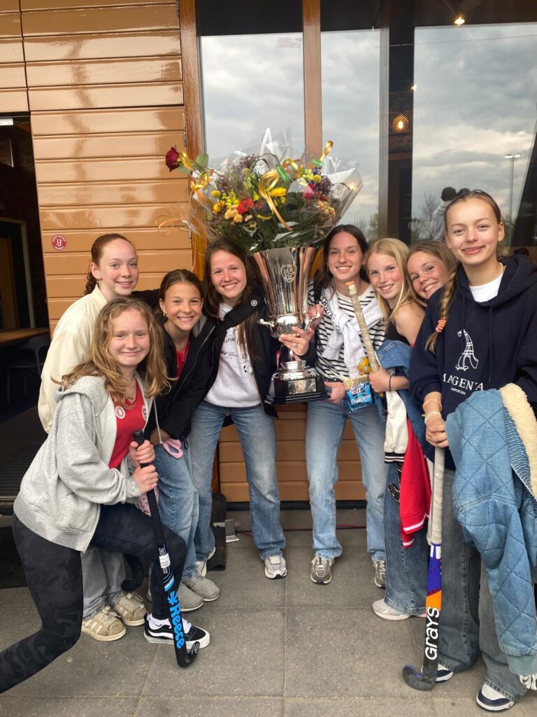 Zo´n overwinning moet natuurlijk gevierd worden! De spelers op het veld werden ondergesproeid met champagne. In Utrecht ontvingen ze dan ook nog eens de welverdiende Silver Cup! Toen de tourbussen weer terug naar huis reden werd er natuurlijk doorgefeest. De heren gingen naar een kroeg in Nijmegen en de dames haalden pizza toen ze terugkeerden naar Amsterdam.