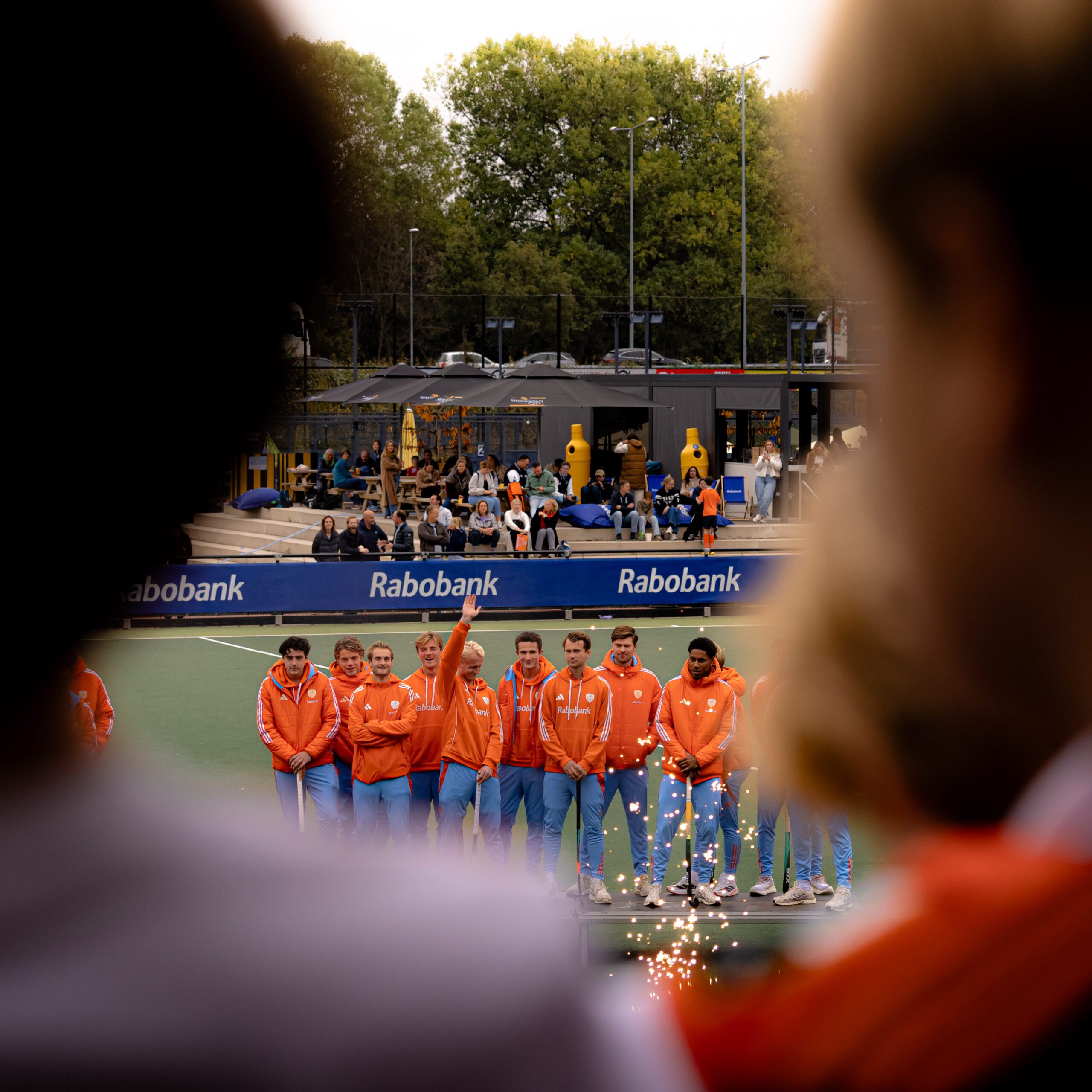 Op de tribunes klinkt luid applaus en als publieksfavorieten Jip Janssen, Xan de Waard en Yibbi Jansen hun entree maken wordt er nog een tandje harder gejuicht. Vervolgens is het tijd voor de vele spelletjes onder begeleiding van de internationals, verspreid over de velden. Er is een hockeykooi, een dartbord met kleefballen, een snelheidsmeter, een stormbaan, een doel met gaten en er zijn skills challenges.
