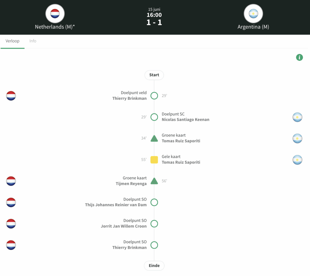 Argentinië nam die shoot-outs belabberd. Geen enkele poging verdween in de goal, Derk Meijer kon alle pogingen (van Mendez, Domene en Toscani) simpel pakken. Voor Nederland scoorden Van Dam, Croon en Brinkman. En zo heeft Nederland toch maar weer een bonuspuntje erbij.