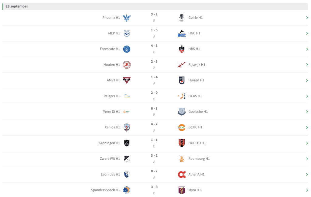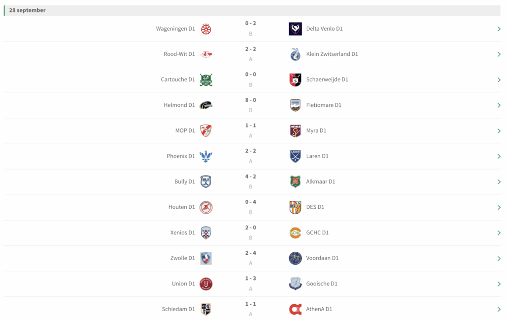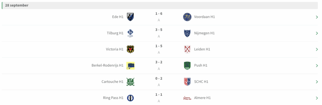 Na vier speelronden op het één na hoogste niveau zijn SCHC en Nijmegen nog ongeslagen bij de mannen. In de damescompetitie waren het de vrouwen van Leiden die ongeslagen bleven. Bekijk hier de overige uitslagen: