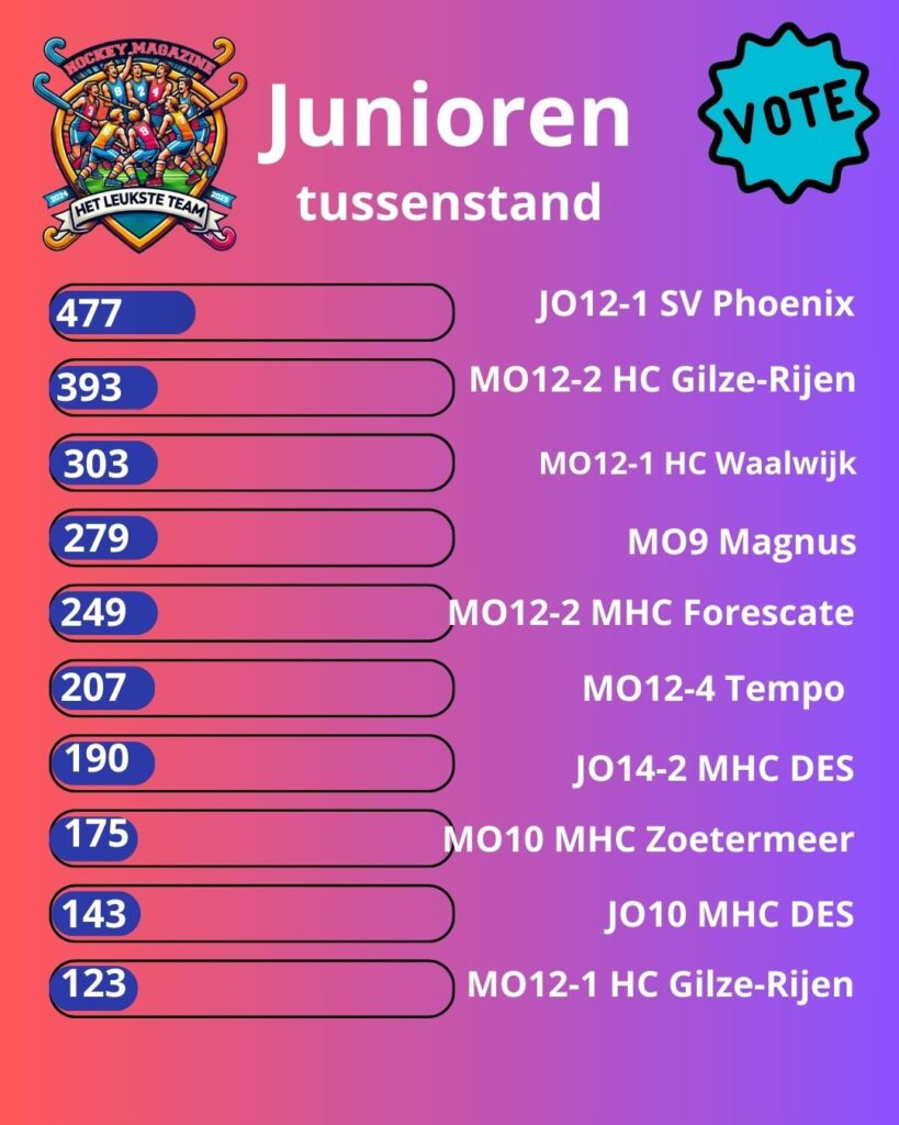 De stemmen stromen binnen! Met meer dan 8000 stemmen is de strijd losgebarsten om de titel ‘Het Leukste Team 24/25’. Wij krijgen ontzettend veel leuke reacties binnen, voor ons is het onmogelijk om één favoriet aan te wijzen. Daarom laten we het aan jullie over! Elke stem telt en zal gaan bepalen wie er uiteindelijk met eeuwige roem én een toffe teamprijs vandoor gaan.